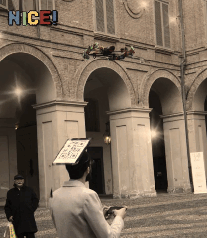 This project uses a Parrot Bebop Drone and extends the API example (https://github.com/Parrot-Developers/Samples). You need to place a QRCODE on a graduation cap and run the Android application. The Bebop will point its camera downward and will send the video stream to the smartphone. The android application will search for the QR-CODE and will use its coordinates and its area to send commands to the drone, adjusting its position until it will be centred upon the cap. The x,y coordinates are used to drift the drone left, right.forward and backwards. The area is used to decide the altitude of the drone.