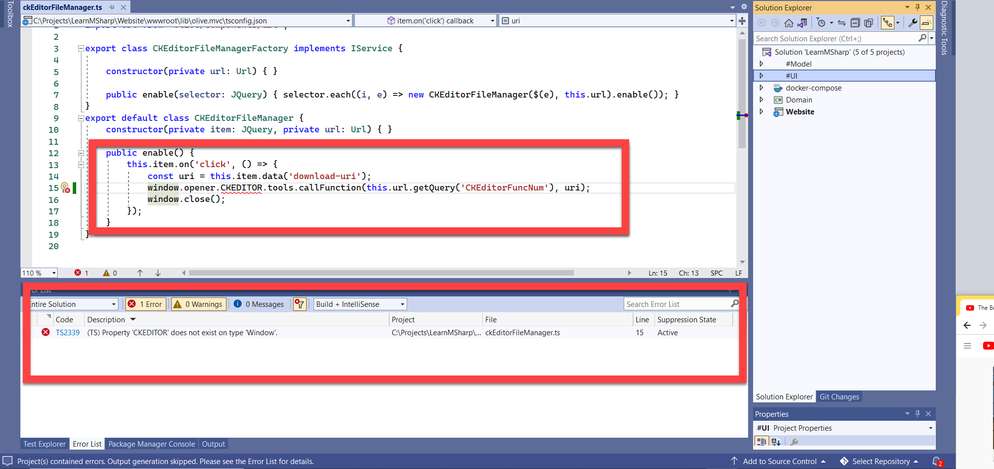 I am creating a new M# Project by following the instructions provided at https://www.msharp.co.uk/#/Install/README?id=create-your-first-application. After All the packages are installed and I run the project. I am getting this Issue. I created many projects still getting the same issue. Even I didn't change any files in the project. I am running a brand new project. Any solution to this.