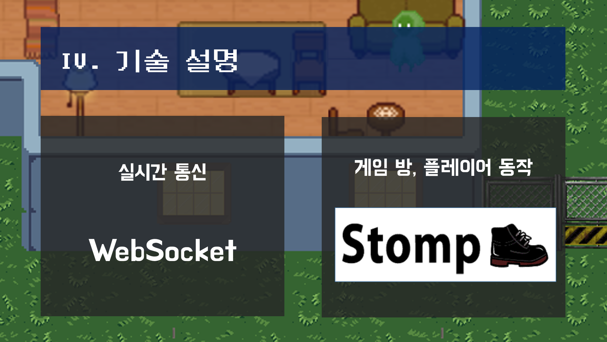 - 플레이어는 게임 맵을 키보드로 이동하며 마우스를 이용해 오브젝트 및 다른 플레이어와 상호작용 가능