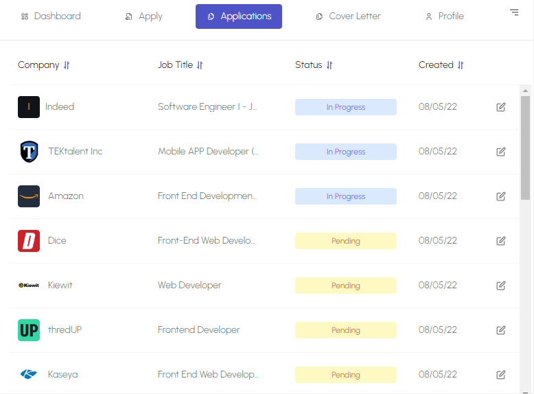 - AAU you are able to filter the applications and update its statuses.