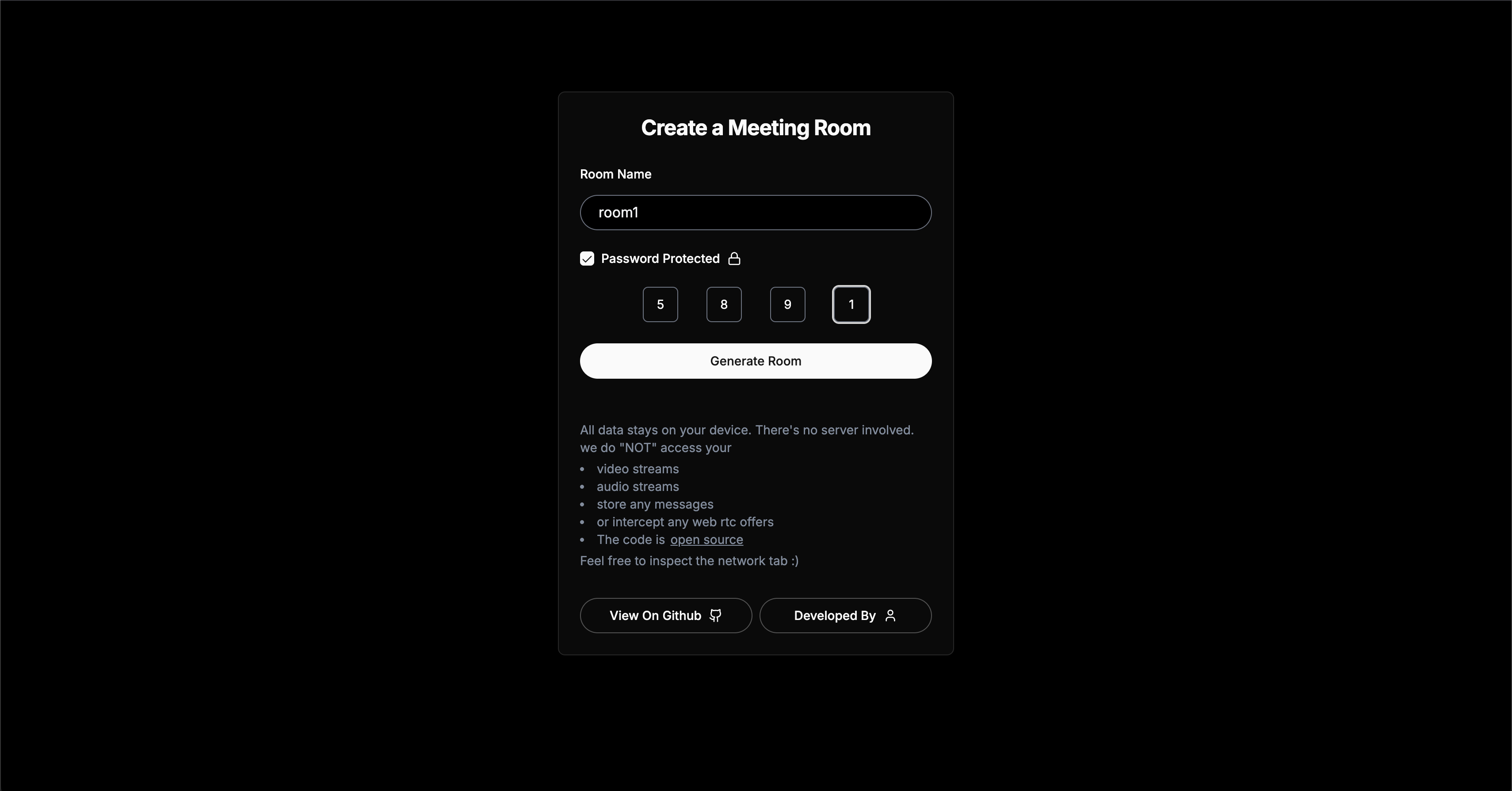 A secure, privacy-focused video calling application built with Next.js and WebRTC, featuring real-time chat and room management capabilities. with self hosted coturn on ec2.