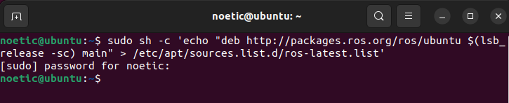 sudo sh -c 'echo "deb http://packages.ros.org/ros/ubuntu $(lsb_release -sc) main" > /etc/apt/sources.list.d/ros-latest.list'