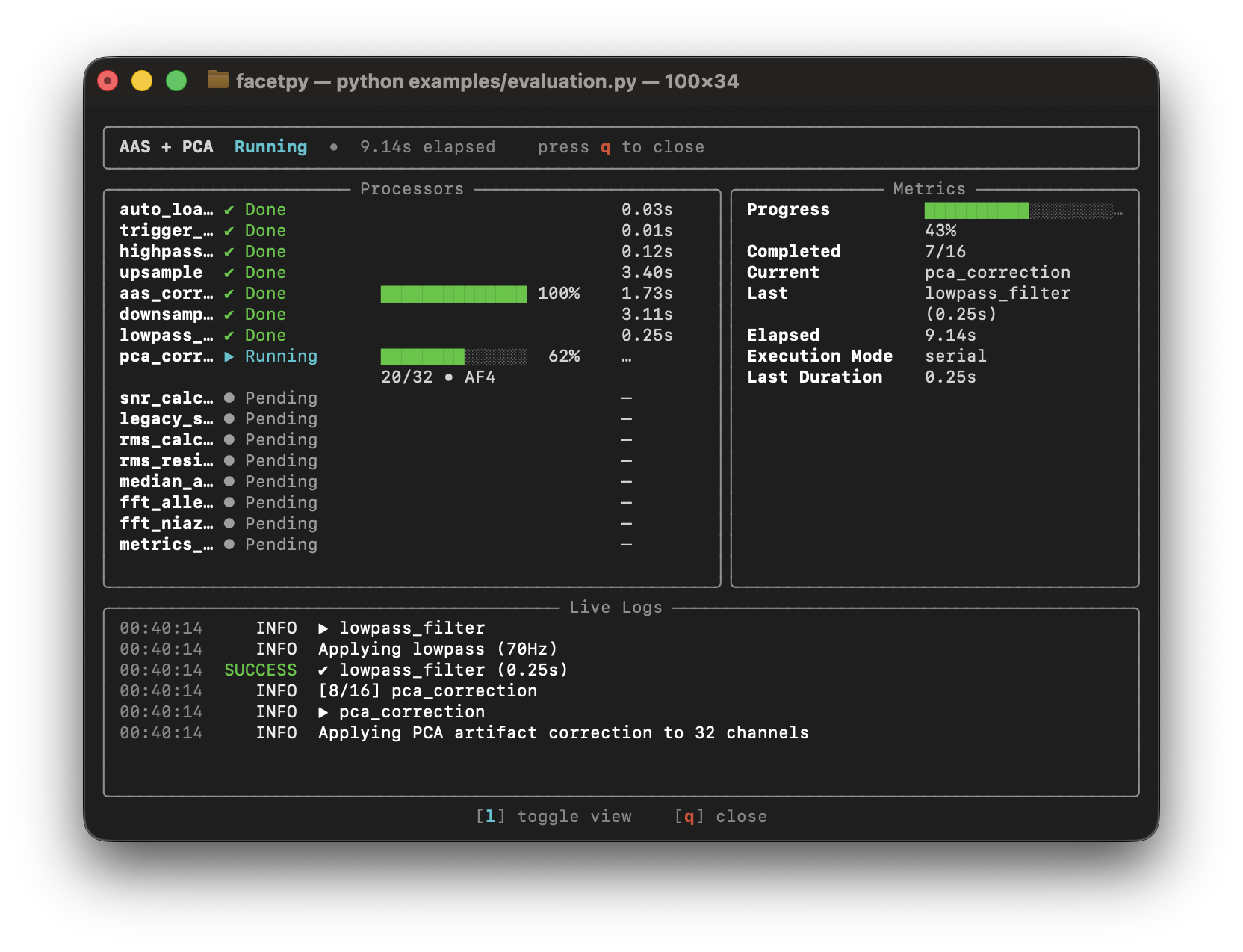 Built on MNE-Python, FACETpy provides a modular pipeline architecture that lets researchers process, evaluate, and compare correction results with minimal code.
