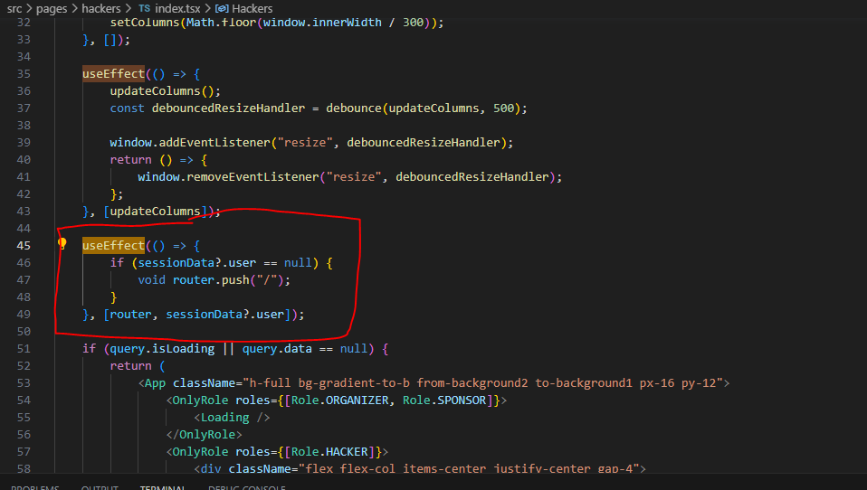 This is bad coding practice as the user should simply be not authorized to view this page, similarly to how logged in hackers cannot use the sign in form. This should be handled server side instead of on the client.