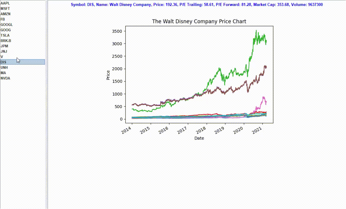 It takes the top 25 stocks listed on S&P 500 market index using the most recent data from slickcharts.com. This number (25) can be higher, but data retrieval using this technique may take some time.