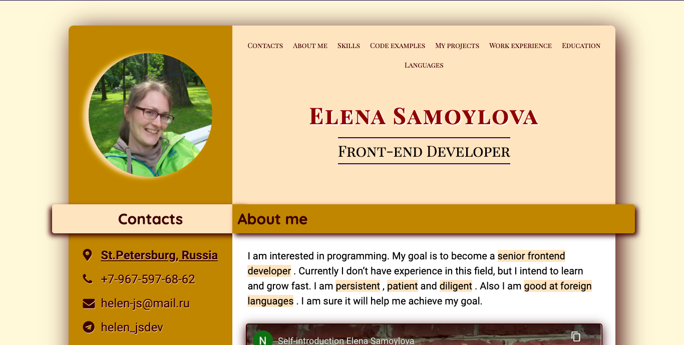 - Deploy: https://helen-js.github.io/rsschool-cv/