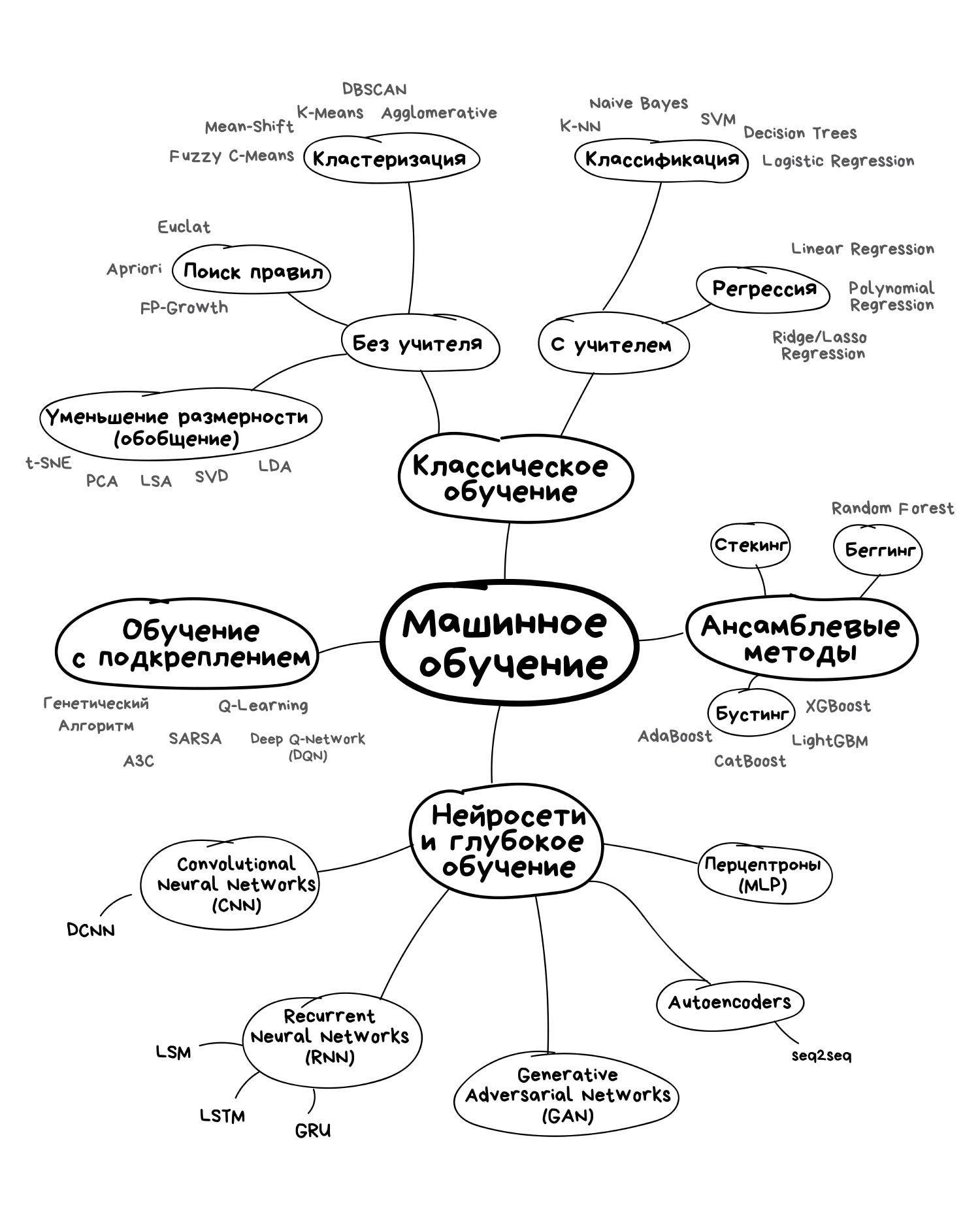 Машинное обучение делится на: