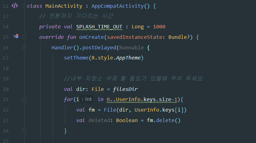 내부 저장소에 초기 정보를 저장합니다. 따라서 내부 저장소를 clear 할 필요가 있다면 MainActivity코드에서 위 부분을 주석 처리 해제하고 실행 시켜야 합니다.