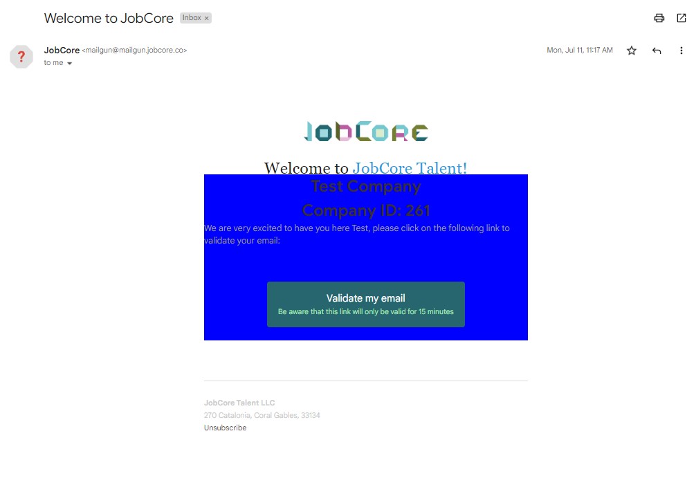 When you create an account as an employer, you receive an email where you must click a link to verify your email address.
