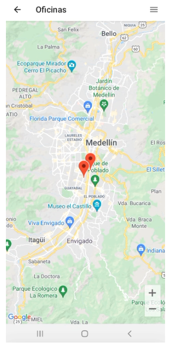aplicación móvil en la cual se permita el envío de documentación a Sophos, con el fin de soportar información como incapacidades, certificados, entre otros., la aplicación cuenta con geolocalización para la visualización de la ubicación de las oficinas de la empresa en Google Maps