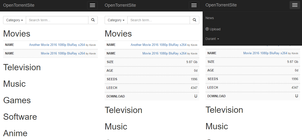 A modern torrent search engine/website template that is easy to setup with an intuitive GUI. Engineered to be one of the easiest to use torrent website out there. This site doesn't scrape torrents from any sources, it's only a template you can use to start hosting your own torrent site.