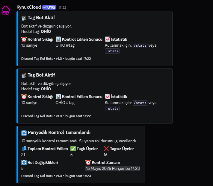 - 🔄 Anlık Güncellemeler: Kullanıcılar tag aldığında/değiştirdiğinde otomatik rol verir/alır