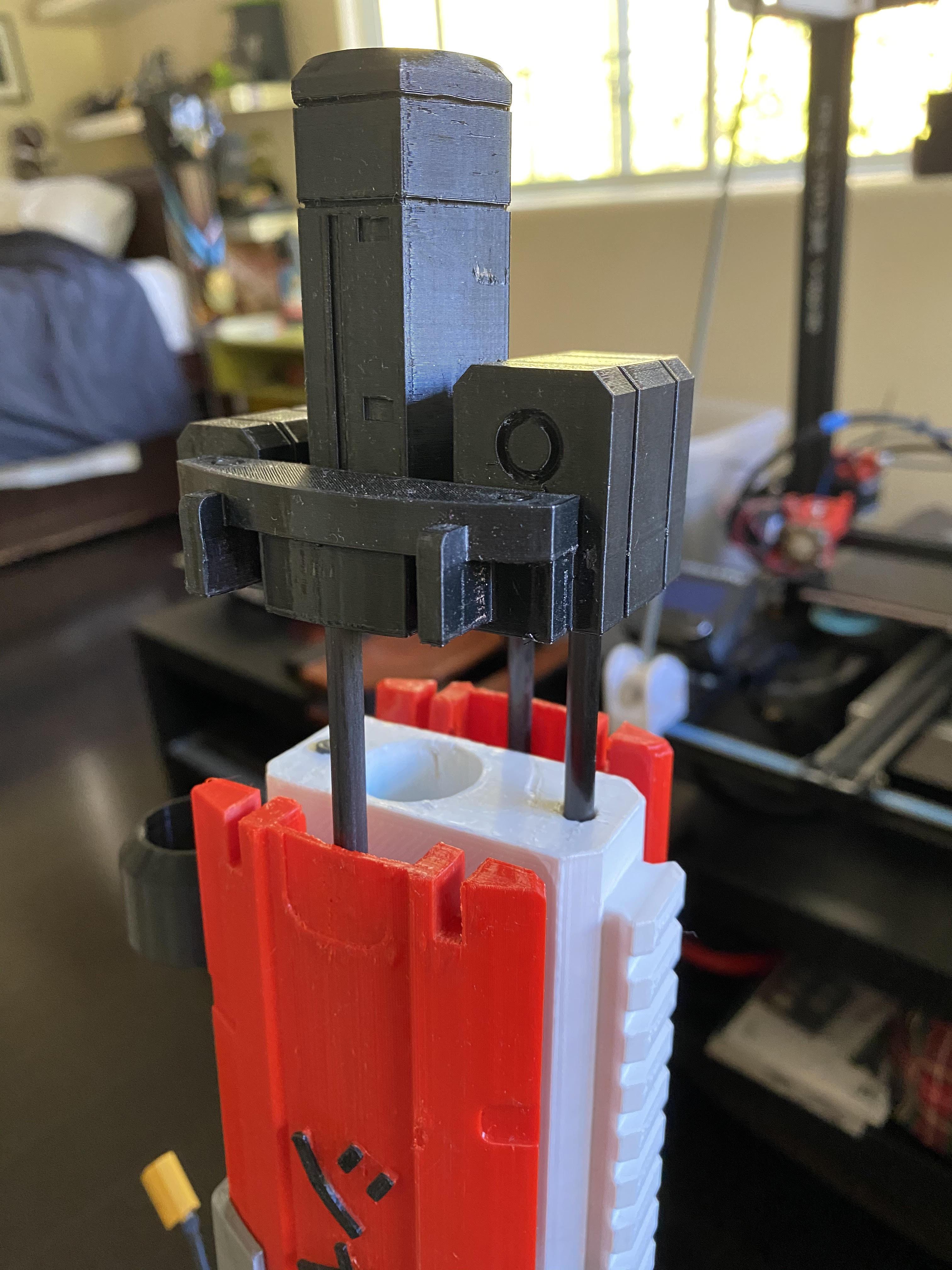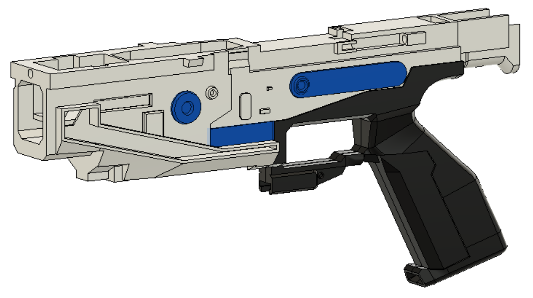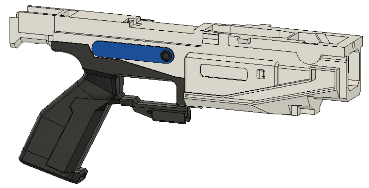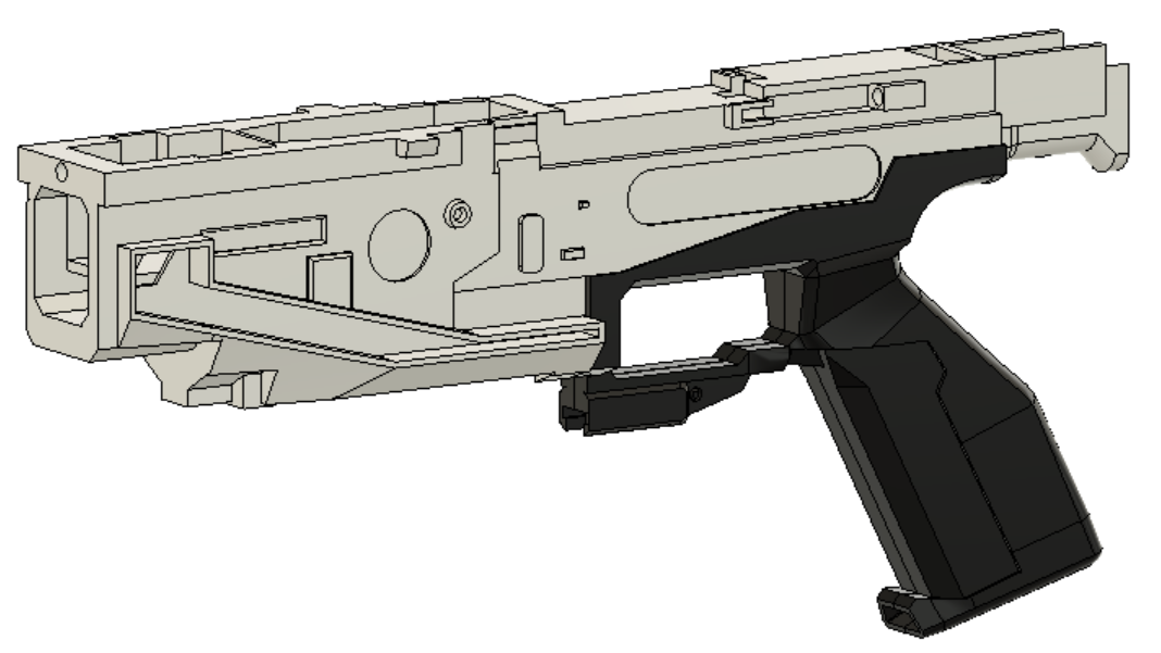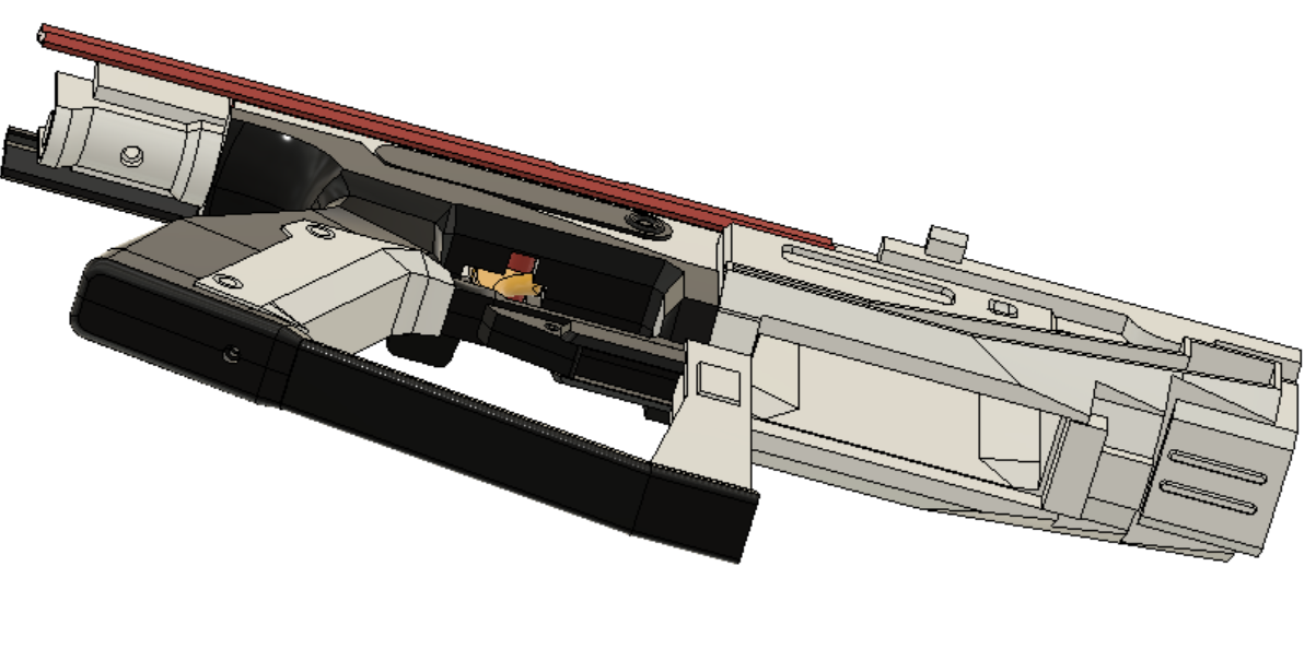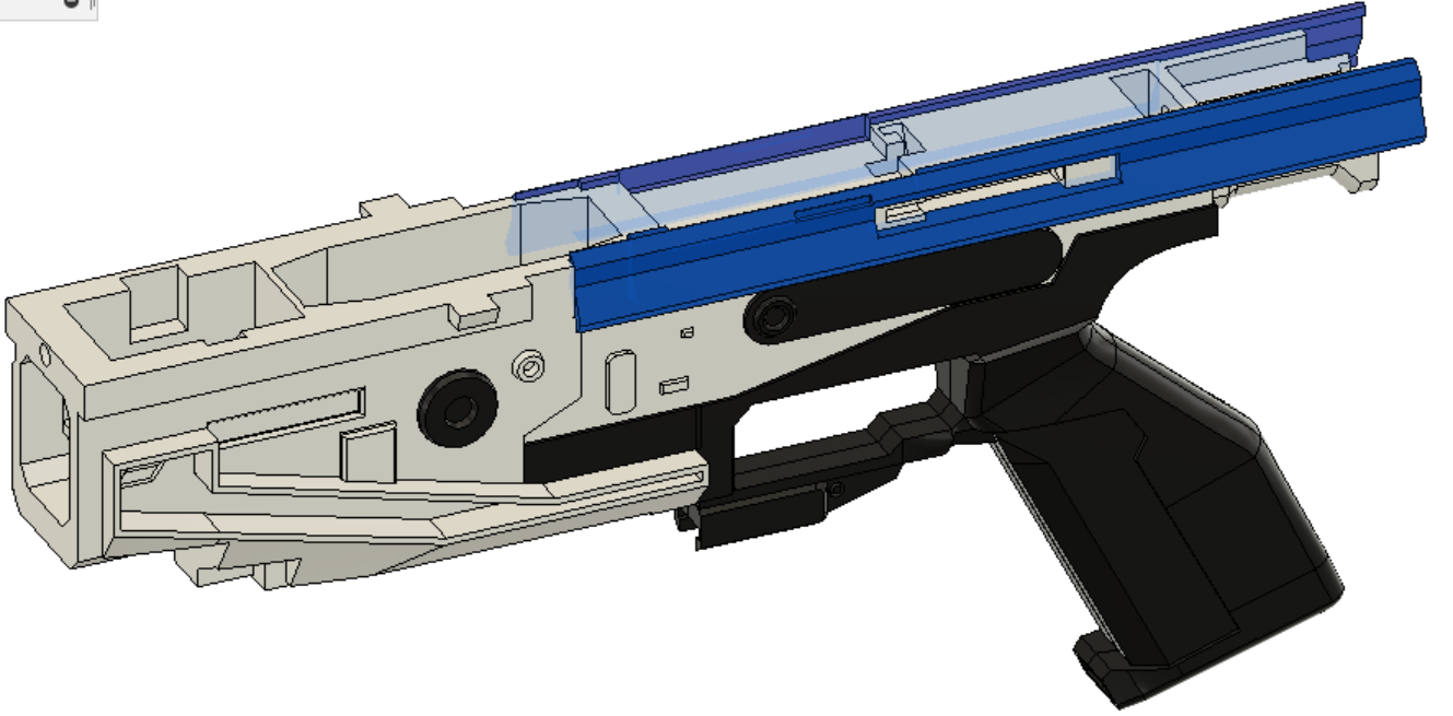 This is a Re-draw of Shadow Price with significant structural and aesthetic improvements that I made over the summer of 2020. It is now to-scale compared to in Destiny and much easier to edit. I plan to make all the other variants of stocks, barrels, and frames seen in the game. Internally, it is still BLDC flywheels and solenoid pusher, but now uses a 16 bit display ammo counter, and includes select fire. It also uses hardware to hold the blaster toghether, unlike the original which was mostly glued together. As a result, most visual components are separate parts, so even without paint the blaster should look very nice, and allows for color swaps if multiple aesthetic components are printed.