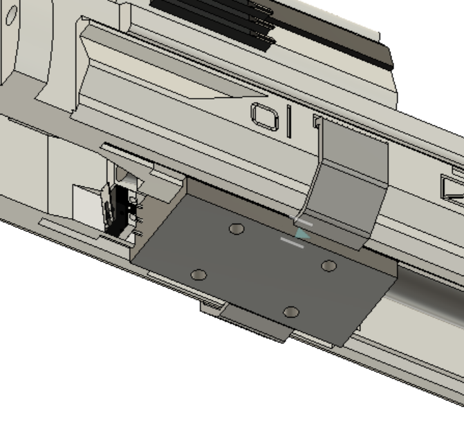 Once all the electronics are inside, snap the ammo counter cover into the upper by squeezing the sides, placing it into the cavity, teetering it back and snapping the sides out (make sure they snap past these tabs)