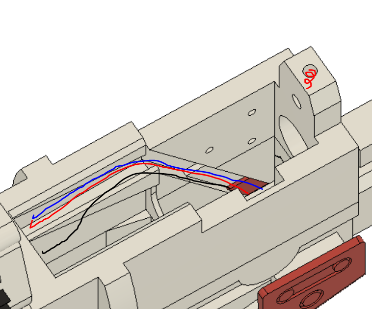 Route ESC and battery cables through this slot (it is ok for them to spill over into the open space, it is well above the magazine and gets covered up)