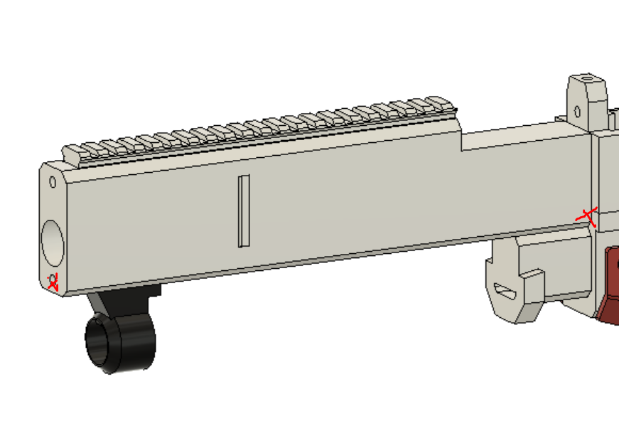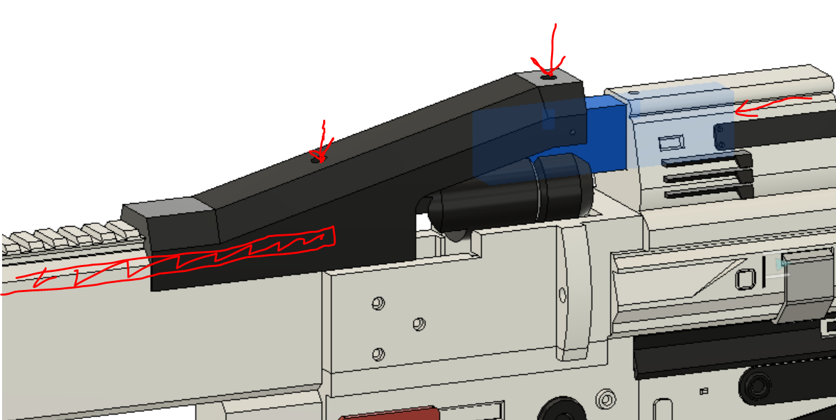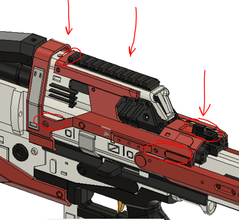- Glue top picatiny into ammo counter (make sure bottom surface flush, the assembly slots into the upper)