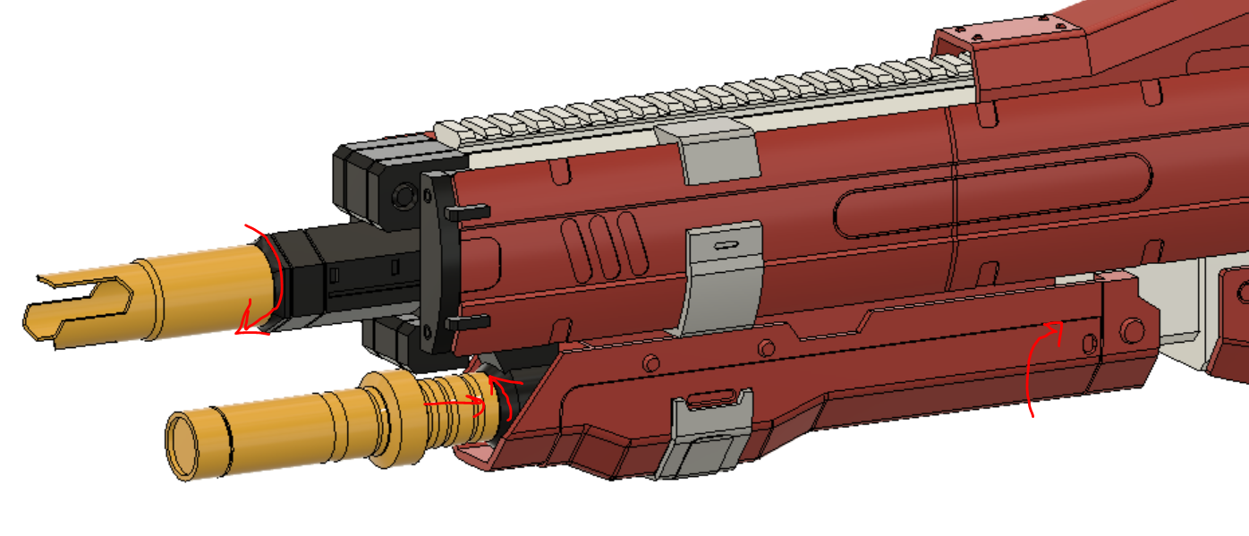 - Slot on the barrel. It will mesh with the top and both panel carbon fiber rods, and sit flush against the barrel filler front surface and lower rod, so they all need to be at the correct length for this step (tip: if you have problems aligning the rods, push them into the barrel FIRST so you just press the assembly into position, slotting all the rods at the same time)