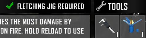 Crafting steel arrows and bolts can now only be done at the workbench, and requires the fletching jig; additionally, the recipe for the basic steel arrows and bolts has changed from arrowhead, feather and wood to scrap plastic (for the fletching), wood, arrowhead, and glue (for attaching the fletching to the shaft).