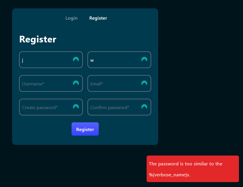 Invalid error message when registering #79