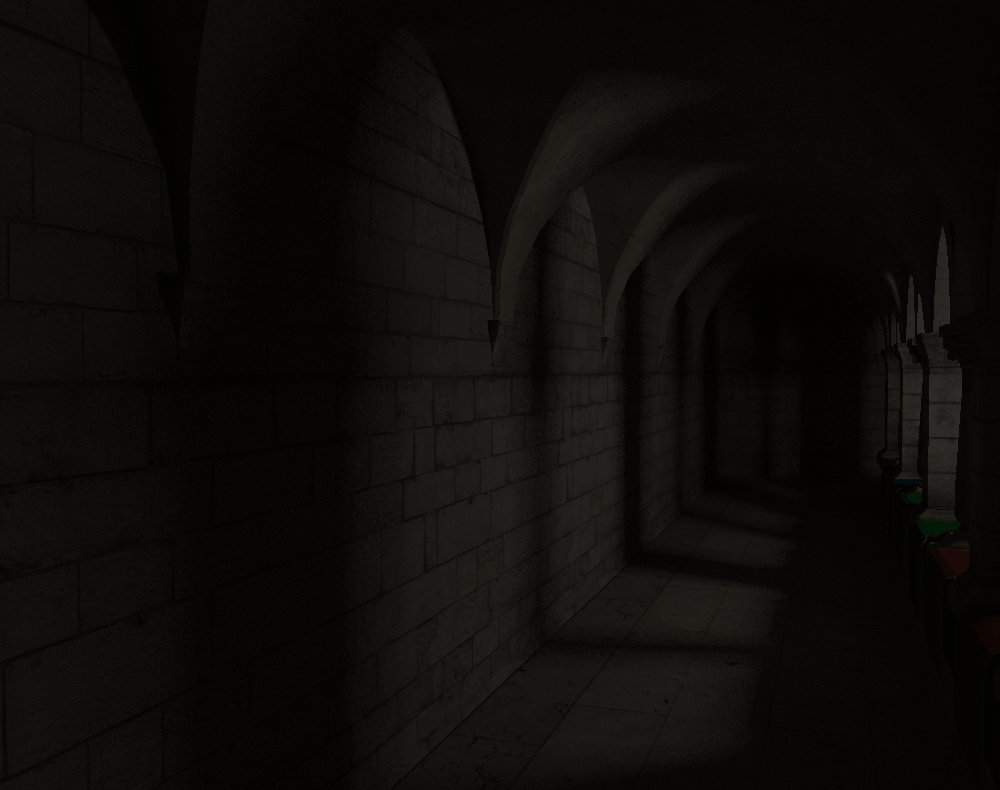建立加速结构并以光线查询 (RayQuery / inline RayTracing) 在片元着色器中查询遮挡或交点辐照度,对每像素在世界空间中以随机采样的方式做辐照度的半球积分,并根据启发式方法做空间滤波和时域积累以实现可接受的降噪效果。