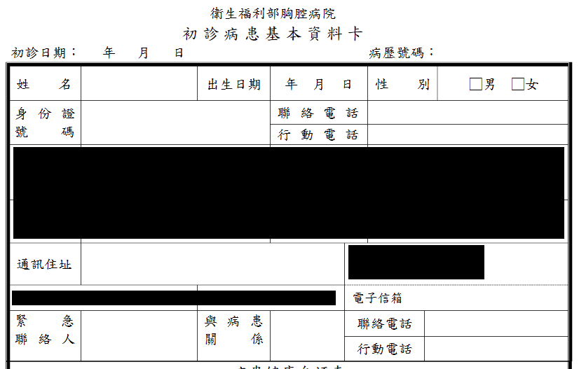 資料來源:衛生福利部胸腔醫院-初診病患基本資料卡