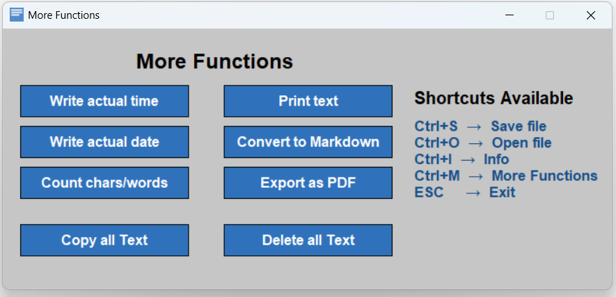 More Functions and shortcuts |