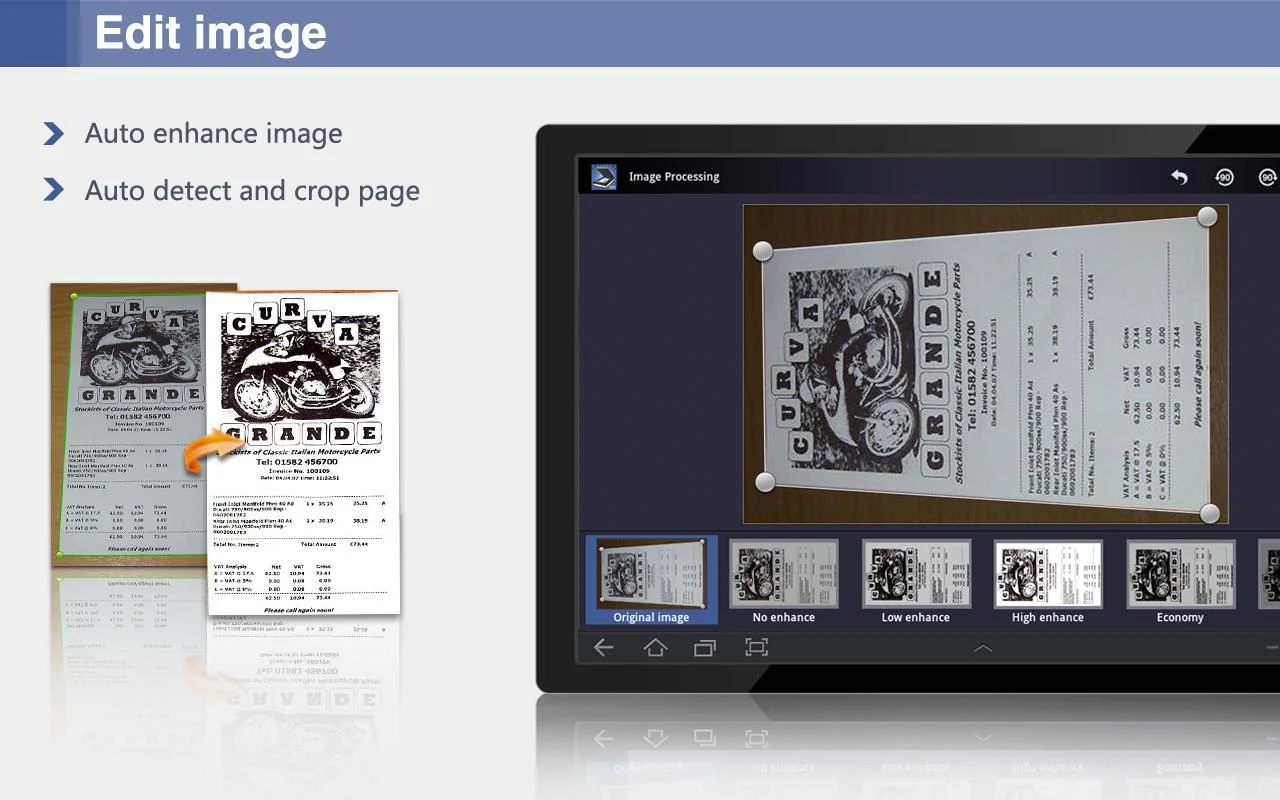Similar to CamScanner (https://play.google.com/store/apps/details?id=com.intsig.camscannerhd), you will be adjusting the properties of the camera (flash, scene, color effect), to take a picture of a printed word document, enhance the brightness/contrast of the image to look more like a scan (https://lh3.ggpht.com/jfjr64-6SZpeGOS74xgIGsMvnpCgPLwtCXjB2a9zo5X10Pv_4iZIMm7le1IzR_uYgj4=h900-rw), and save the image onto the device.