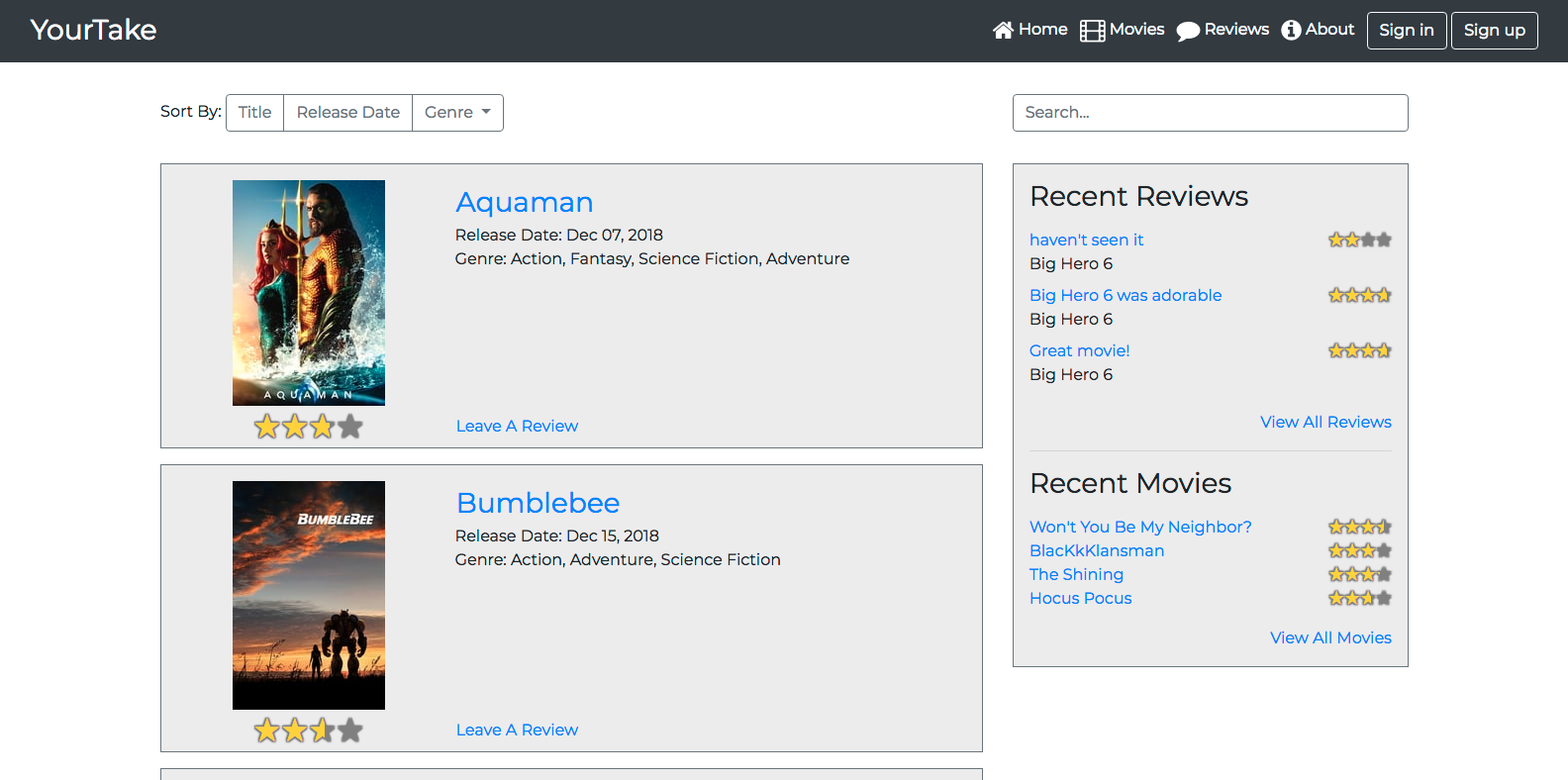 YourTake is a movie review website created by Michael Palhidai to show Teachers' Curriculum Institute that I am a competent full stack rails developer. TCI and I have the same mission to create a better future by helping our teachers and students. Try out the website at the link below.