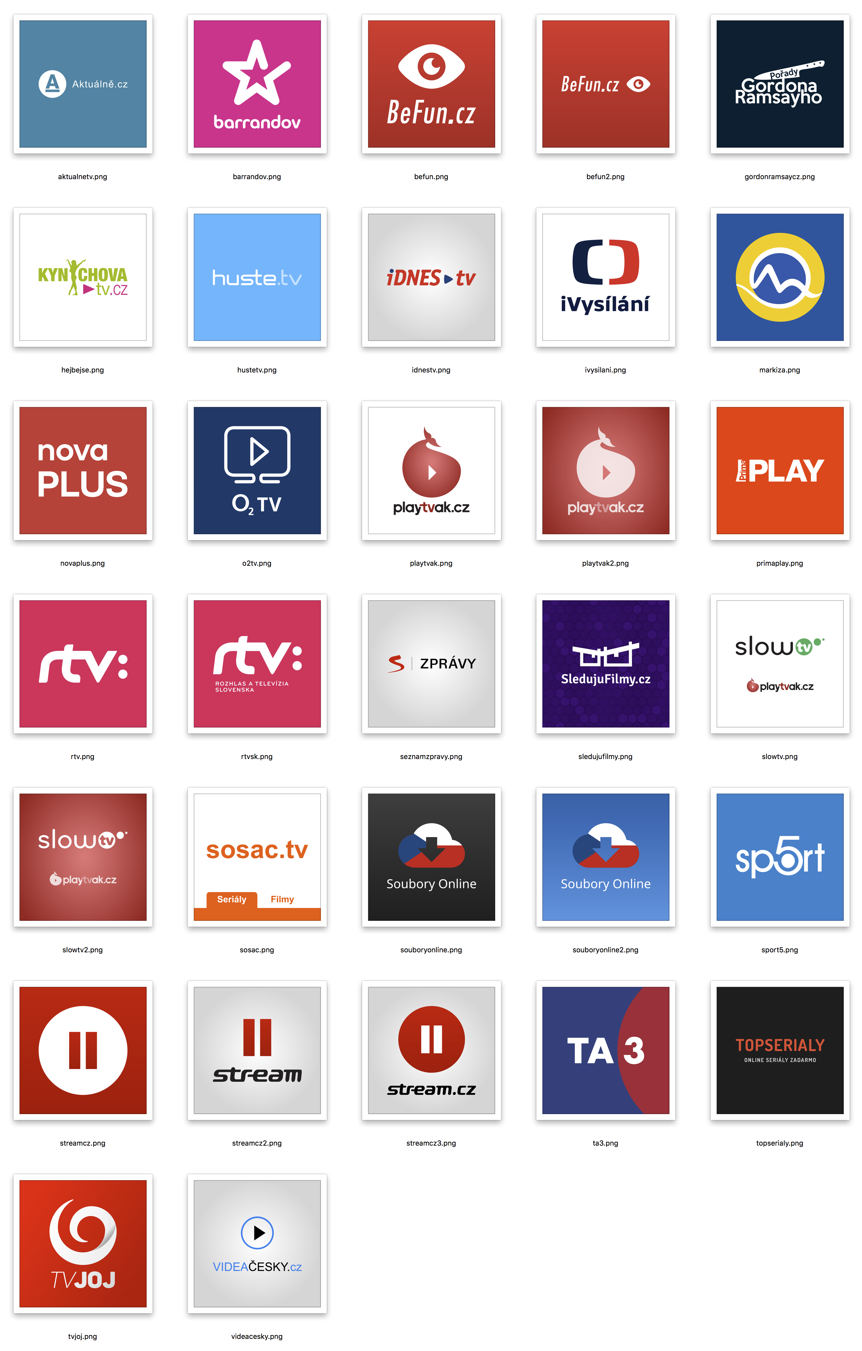Další hojně používanou částí v našem prostředí jsou skvělé doplňky ze společného českého a slovenského repozitáře "Kodi CZ&SK Doplňky". Napadlo mě redesignovat ikony všech doplňků najednou, aby měli koherentní design a návrhy poslat na jednotlivé github stránky doplňků.