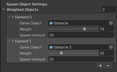 (How likely it is that the weight is choosen divide the total weight of all elements by the weight of this element * 100 to get a procentual amount)Spawn Amount