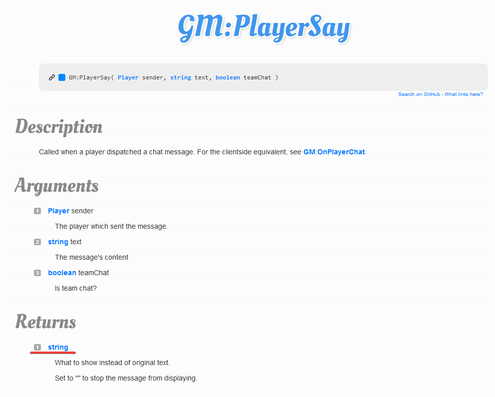 1. PlayerSay return type is a string, not a boolean. wiki
