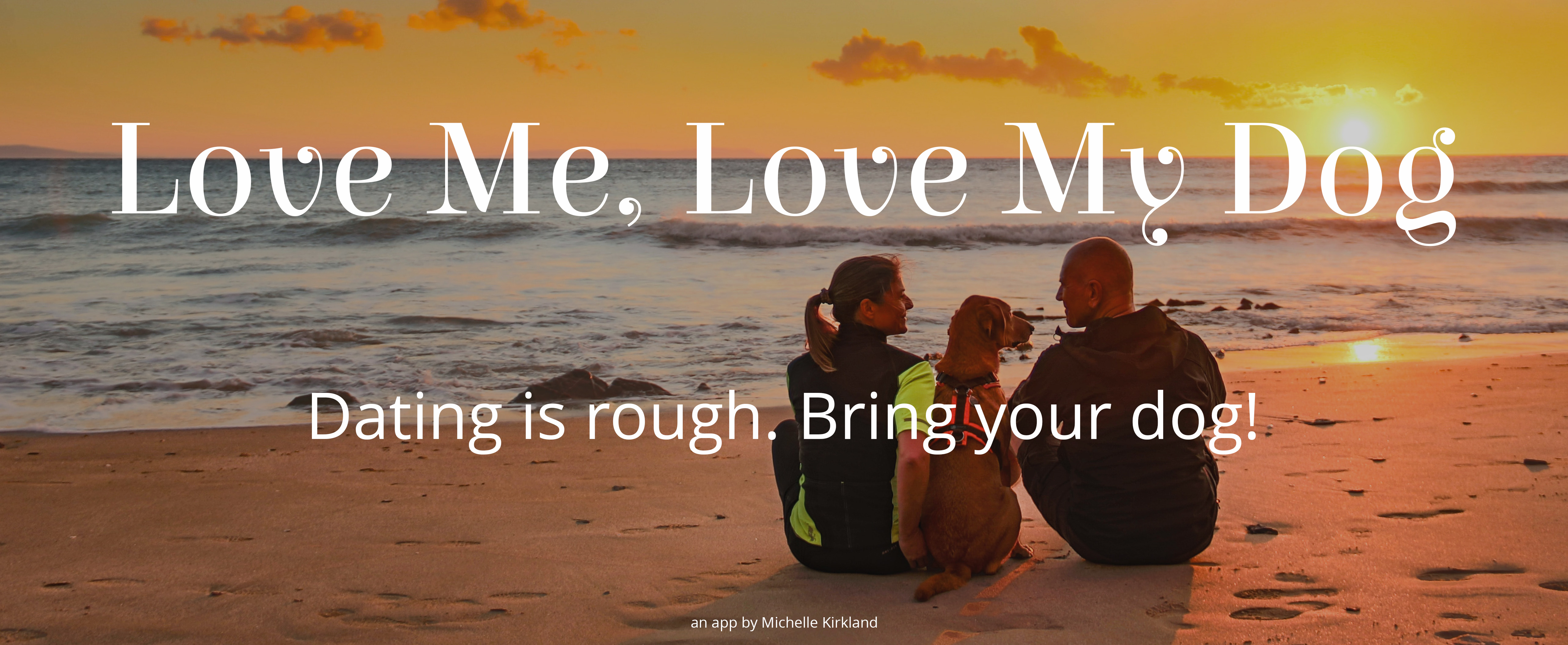 - Love Me, Love My Dog tagline "Dating is rough. Bring your dog!" copyright ©2023 Michelle Kirkland.