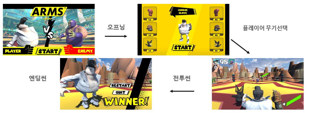 - ARMS라는 스위치로 출시된 액션 게임을 모작하였습니다.