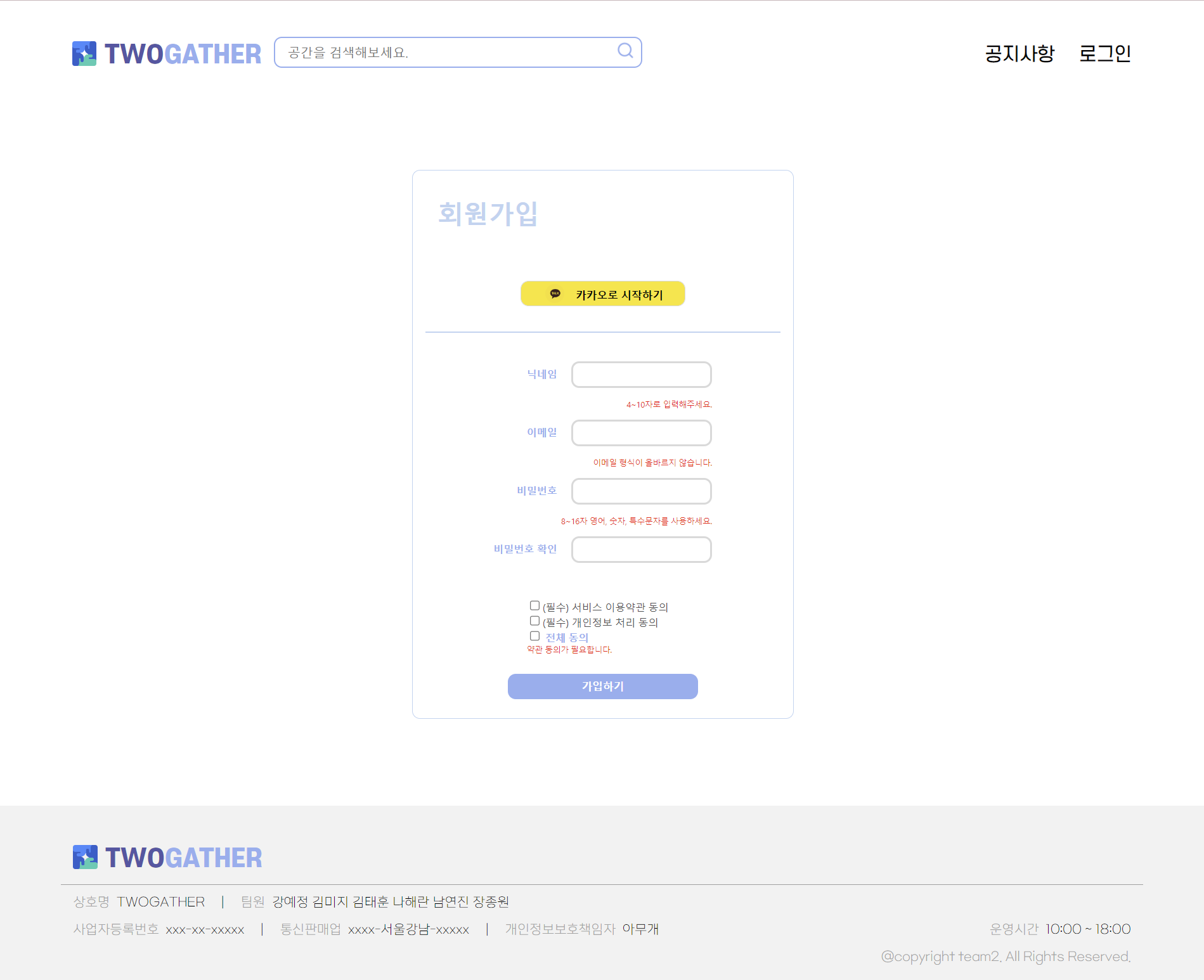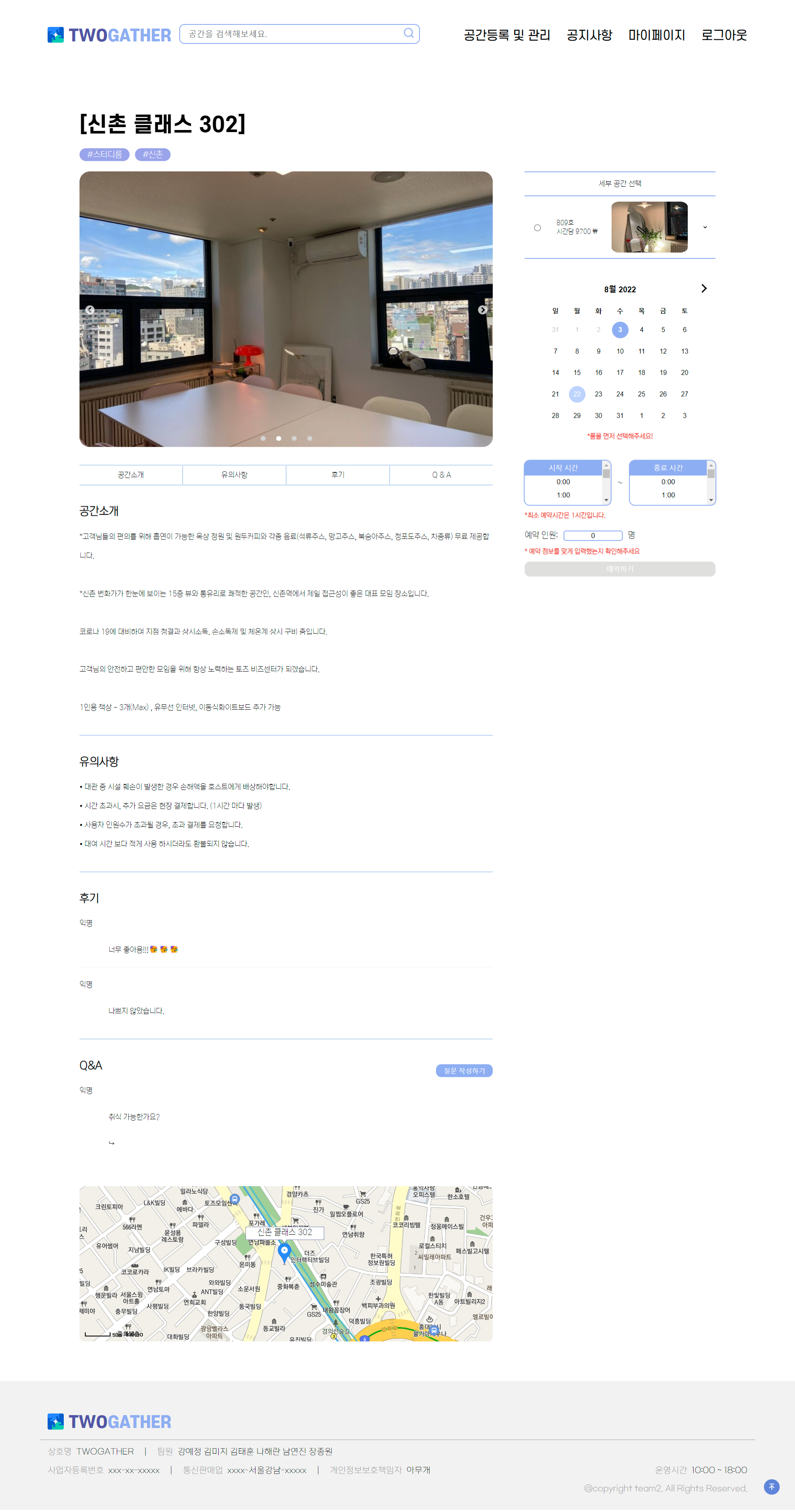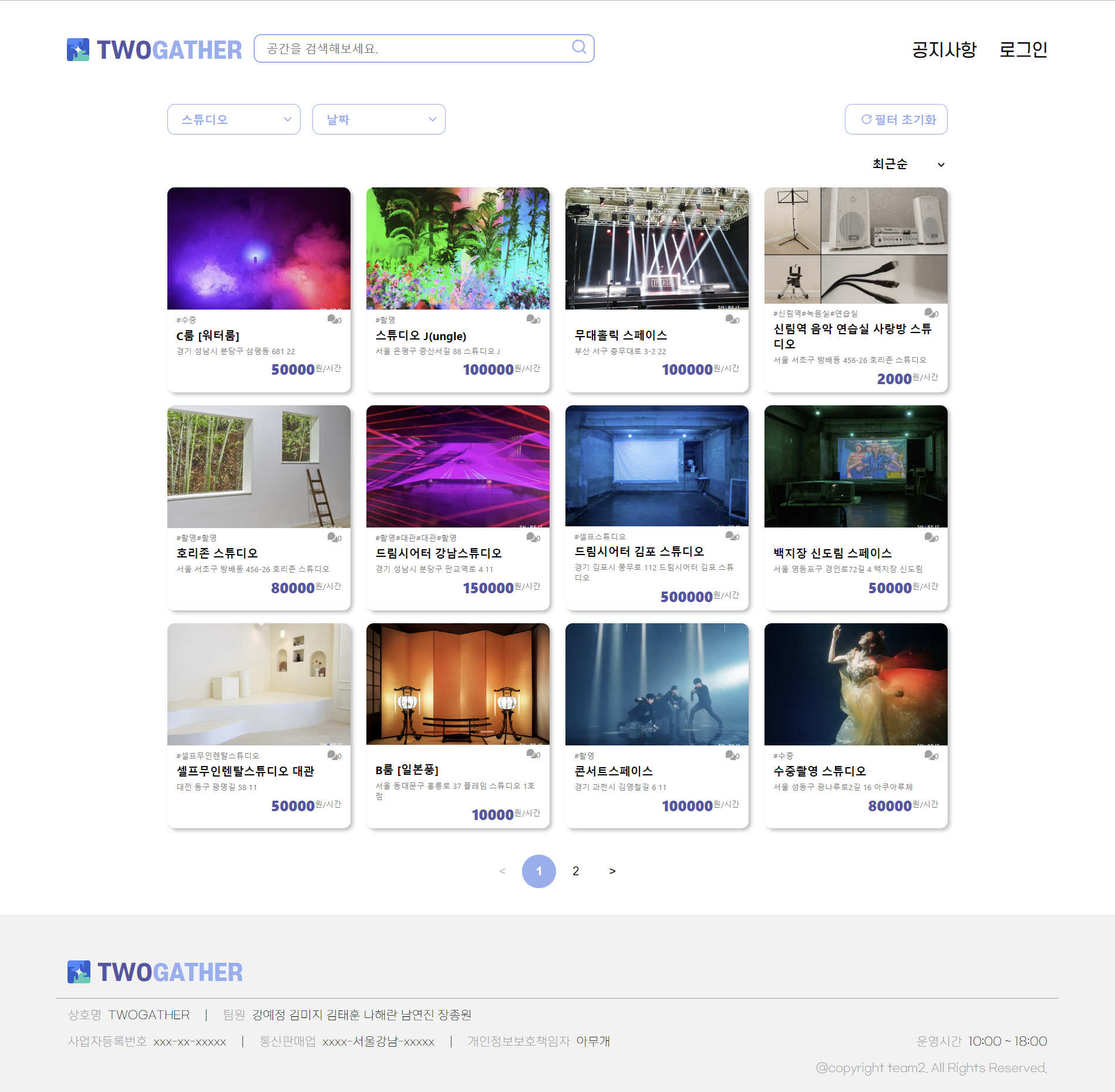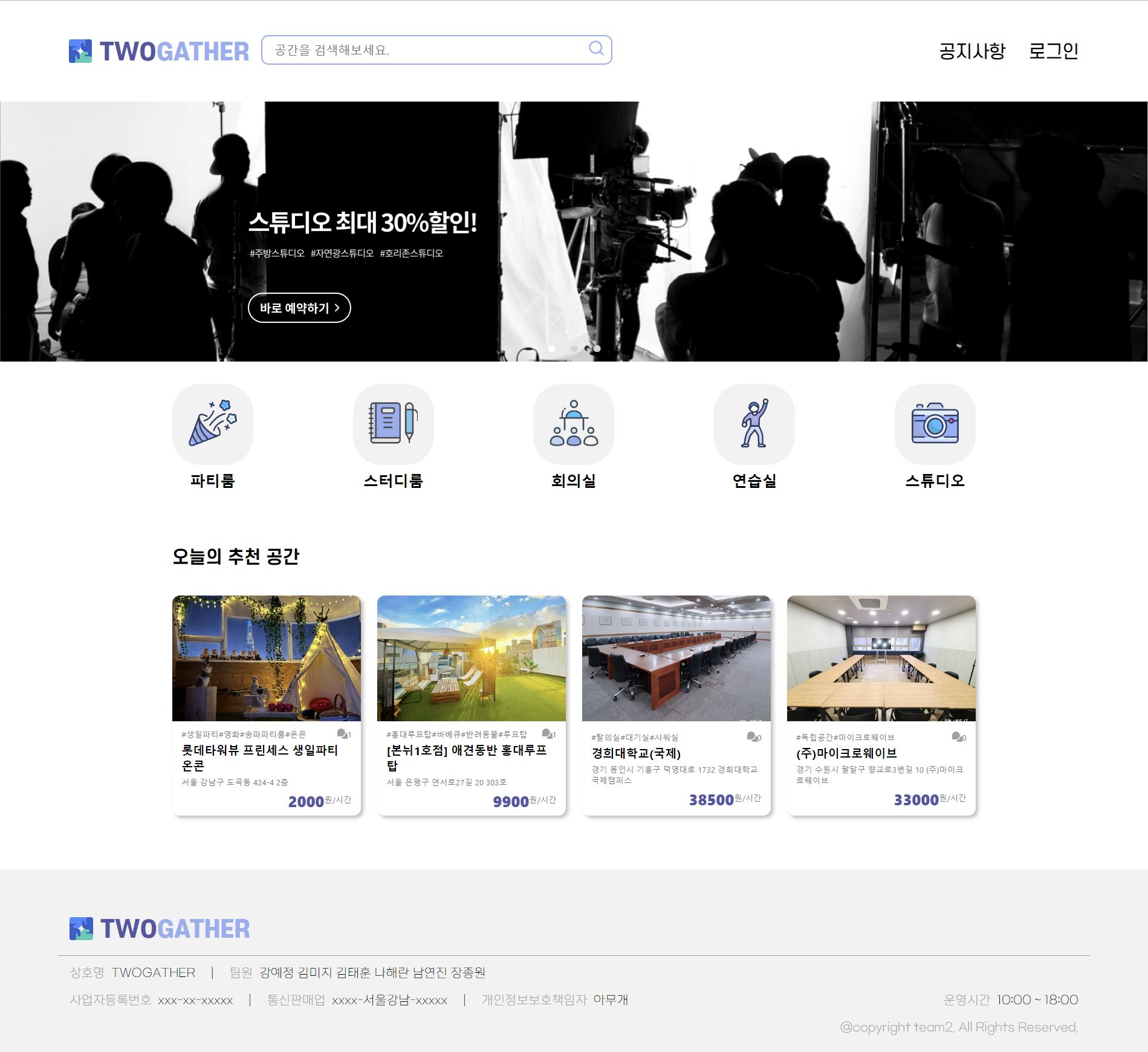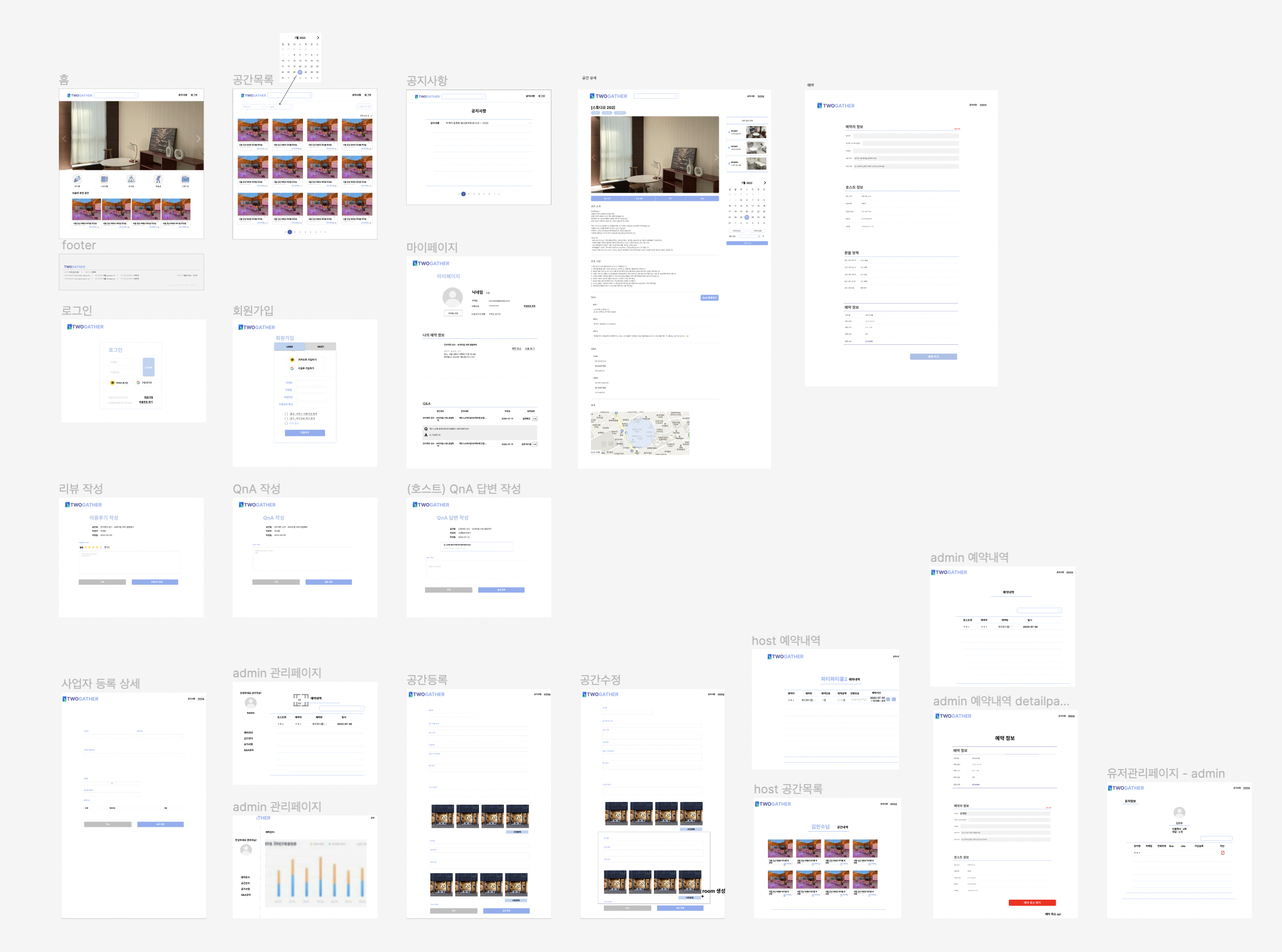 다양한 형태의 공간 쉐어링이 보편화된 요즘, 공간 호스팅이 가능한 서비스들은 많다. 기존 서비스들은 호스트로서 공간을 등록하기도 하지만, 그 호스트가 Guest가 되어 쓰고 싶은 방을 예약하려면 게스트와 호스트 계정을 따로 생성해야 하고, 불필요하게 계정이 많아지면 관리해야 할 데이터의 양도 늘어난다. 이와 같은 형태의 비즈니스의 사용자 경험과 리소스 관리 측면을 고려하여 게스트와 동시에 호스트가 될 수 있는 TWOGATHER를 기획하였다.