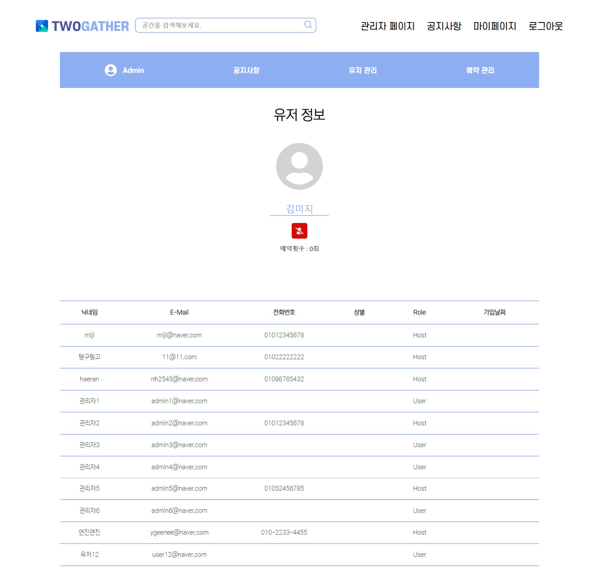 - 전체 유저 조회 등 관리자 기능을 제공한다.