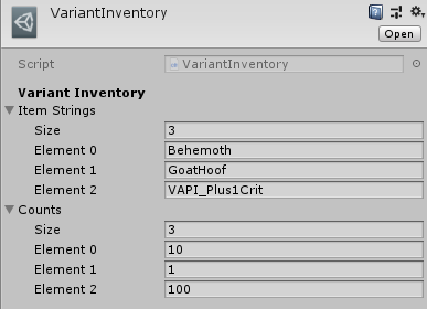 The Variant inventory is a special inventory of Items that are given to the Variant on spawn.