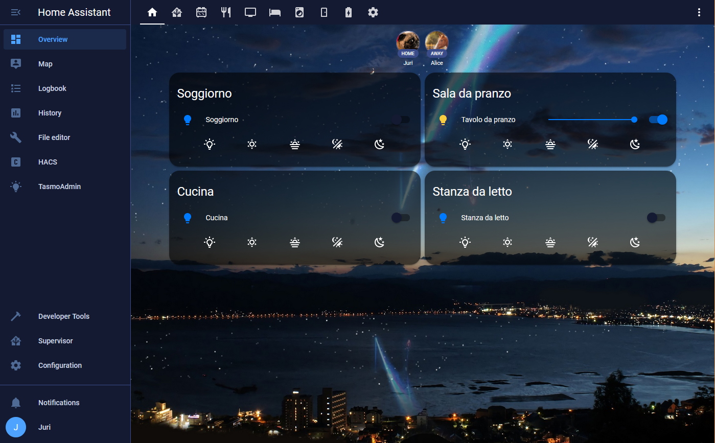 Home Assistant theme - A dark, electric blue theme that reminds (me) the movie Your Name.