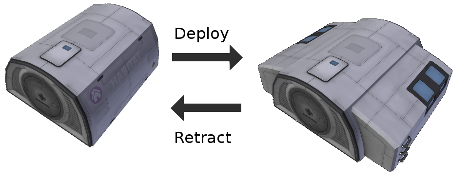 - The deployable part only have space for kerbals when they are deployed. When retracted, no Kerbal has space in there. The Habitat MK2 can house four Kerbals when deployed, the laboratory and the greenhouse can house two Kerbals.