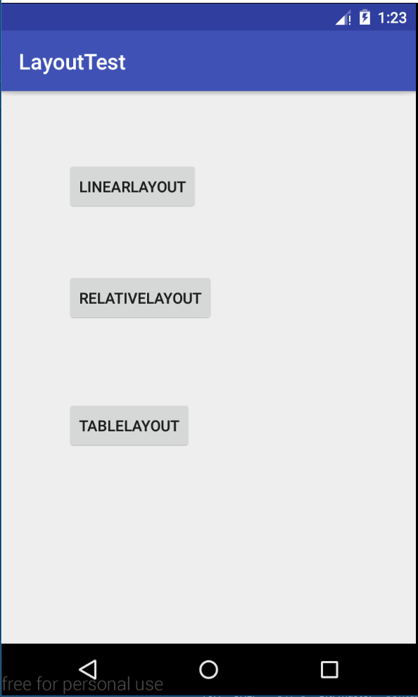 Android 布局实验 主activity三个按钮,分别为LINEARLAYOUT,RELATIVELAYOUT和TABLELAYOUT,点击进入对应的布局展示 ##线性布局 ##相对布局 ##表格布局