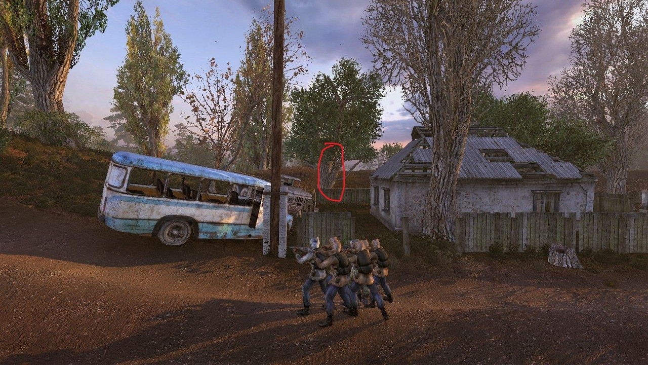 На скрине ГГ находится за деревом, отмеченным красным. Если я правильно понимаю, то это недоработки движковой боевки. (Скрин с OGSR engine, но в оригинале тоже самое, проверено).