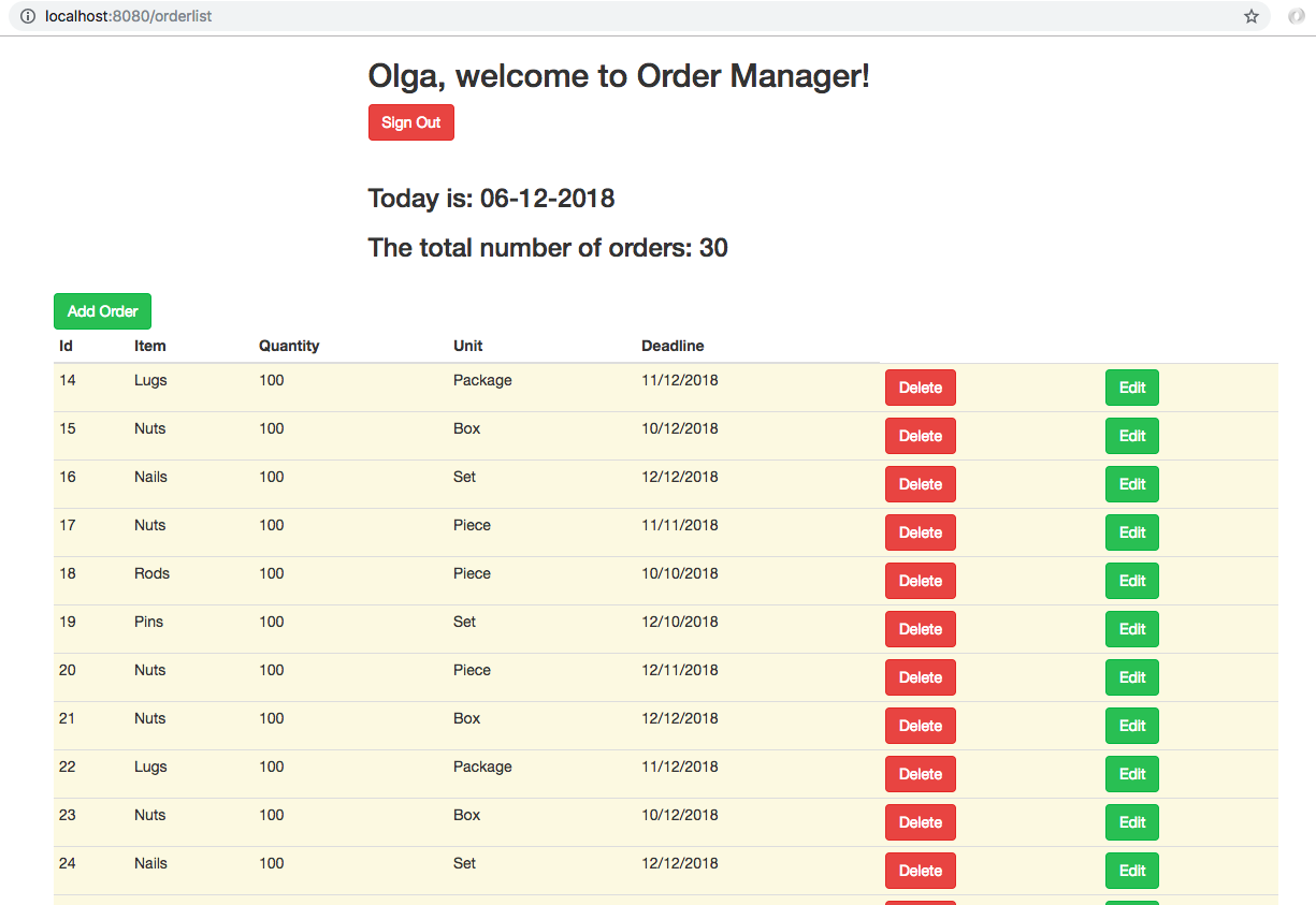 Server Programming project: Java, SpringBoot, CRUD functions, Sign in form, admin and user accounts