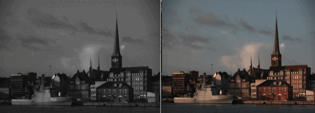 - As it is usually possible to identify objects that should be white, we will find a pixel we know should be white (or gray), which we know should have RGB values all equal, and then we find the scaling factors necessary to force each channel's value to be equal.