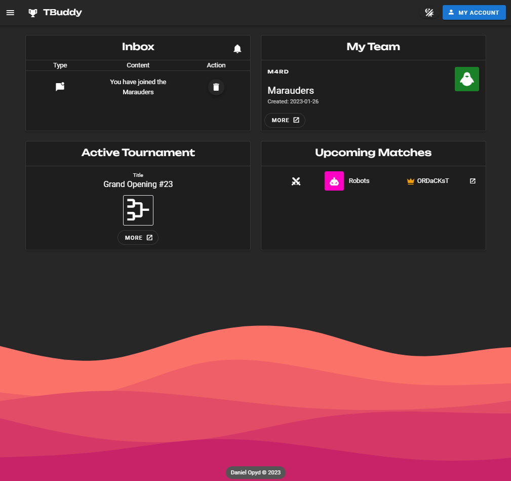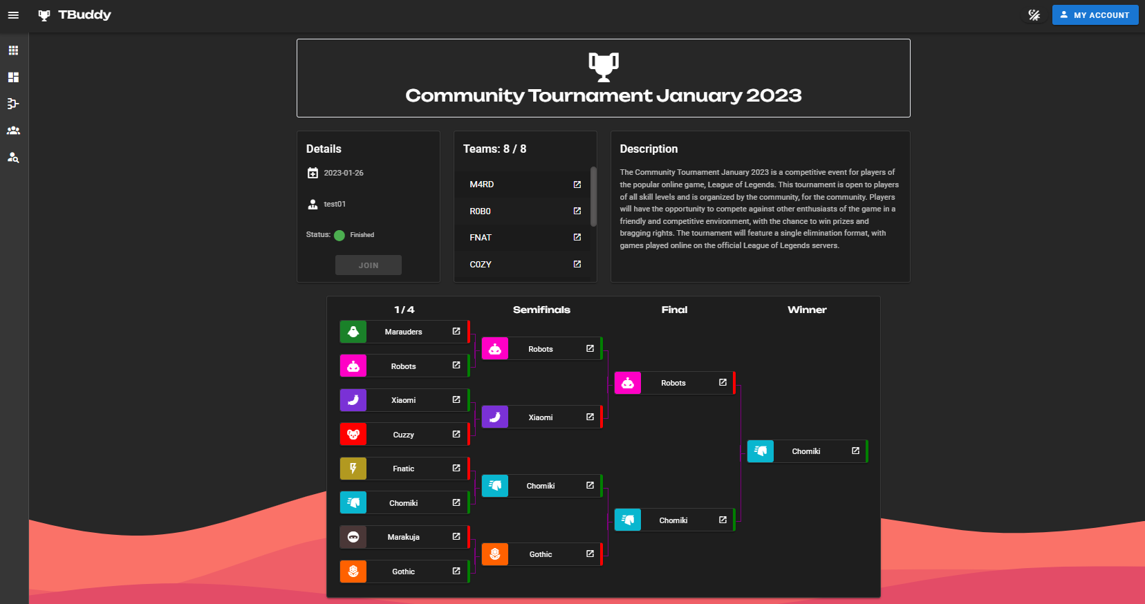 A web application that allows users to create community gaming tournaments and the teams that will then participate in them.