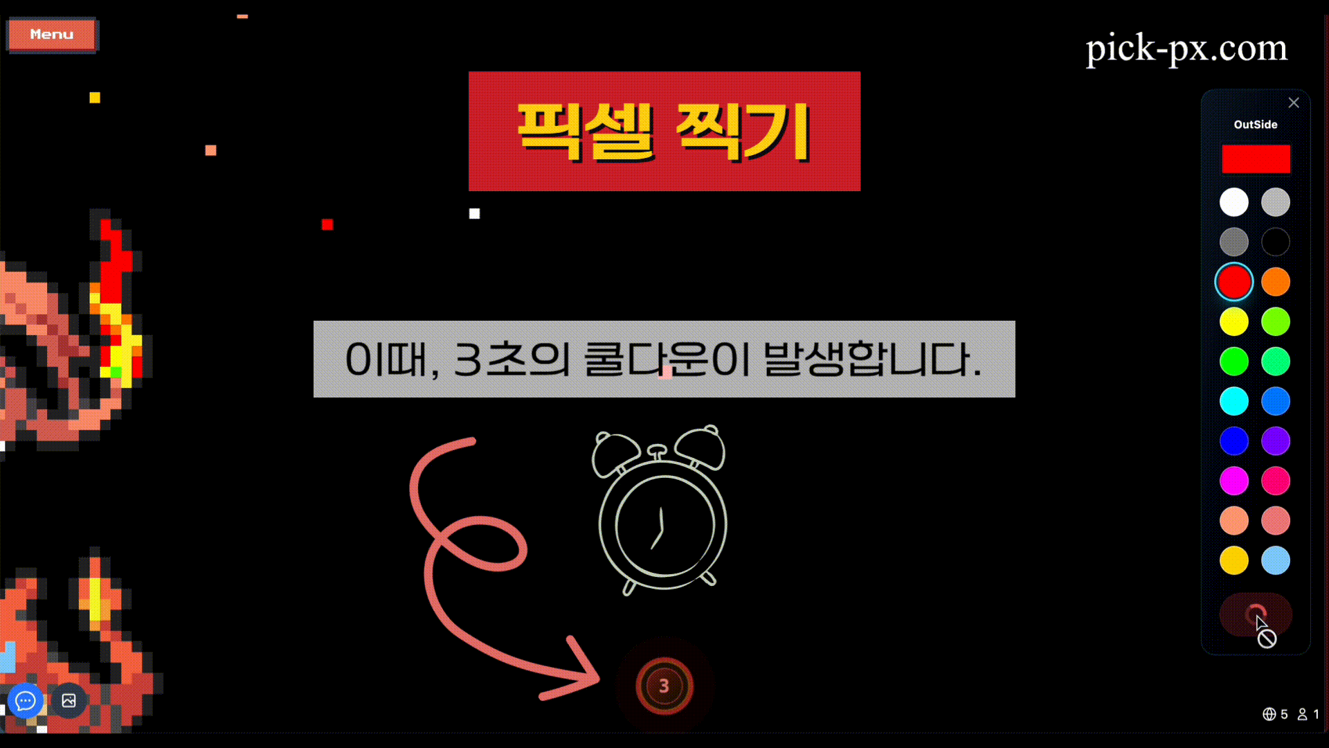 - 3초 후 다음 픽셀을 칠할 수 있습니다.