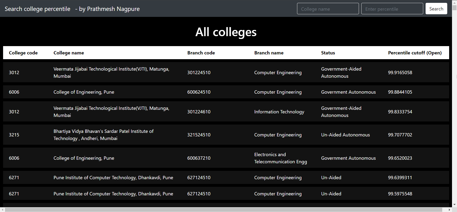 A lot of time is consumed when we need to check every college website or search the college name in document containing percentile cutoffs of a round