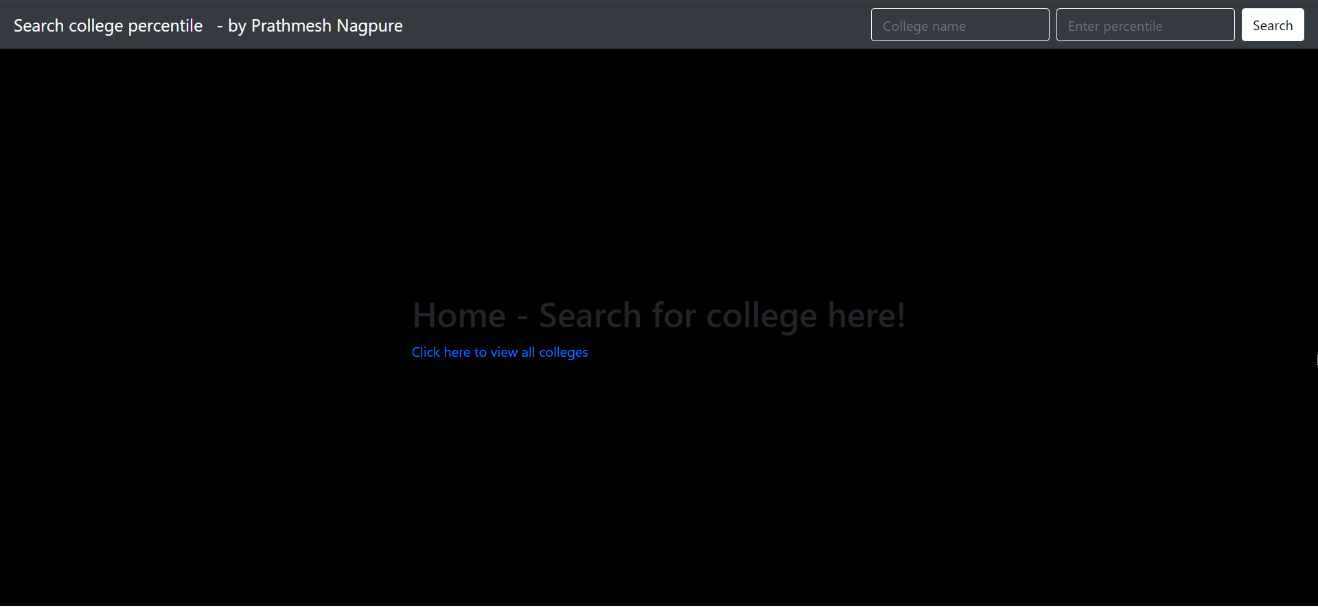 College Searcher is a website developed using Django, a python-based web framework. The project offers a platform that makes it simple for students who have graduated from their 12th grade to choose an engineering college based on their preferences and percentile score. The percentile cutoffs issued by the test body for various universities are not easily navigable, and it is most surely difficult to maintain track of every record accessed. Through data searching and sorting based on percentile and college selection, this study attempts to address this problem. This data was extracted from a pdf of the State Common Entrance Test Cell's Cut Off List of All India Seats CAP Round I for the academic year 2021–22 and converted to a csv file using regular expressions (regex) in Python. This data was inserted into tables in the SQLite3 database which was then retreived by the website to display the results. With a user-friendly interface designed using HTML and CSS, the website provides the ability to search by percentile-cutoffs as well as colleges in a sorted manner. The current website is also getting new features, such the ability to filter colleges by region
