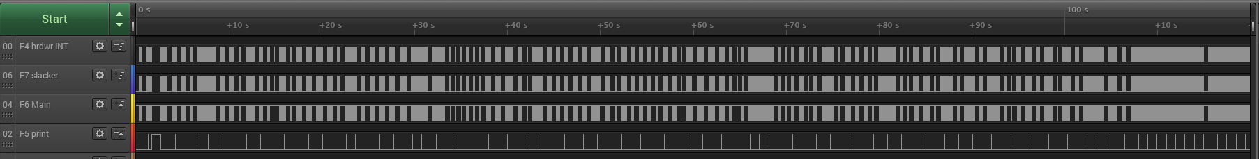 - slacker occurs in (non constant) intervals between 1...10ms
