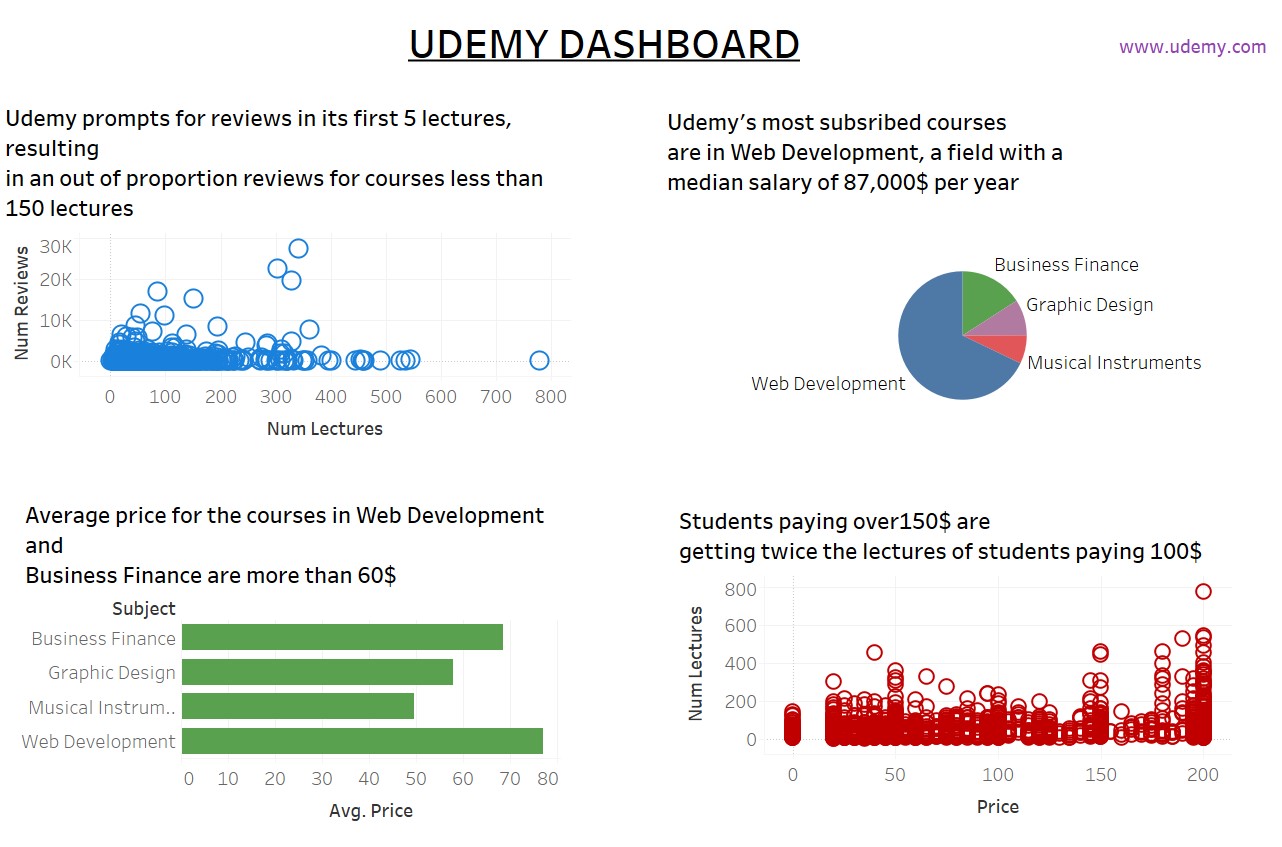 Udemy Dashboard Datasets: edx_course_description from Kaggle, udemy_courses from Kaggle Tools: Jupyter Notebook (Python, sqlite3), Tableau, BigQuery Udemy Dashboard in Tableau: