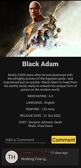 Implemented comments using Firebase Firestore. Each movie is a collection, each comment being a document, which contains information like content, username, link to profile pic and time of comment.The comments for each movie is sorted such that latest comment comes on top. Here's how Comments look