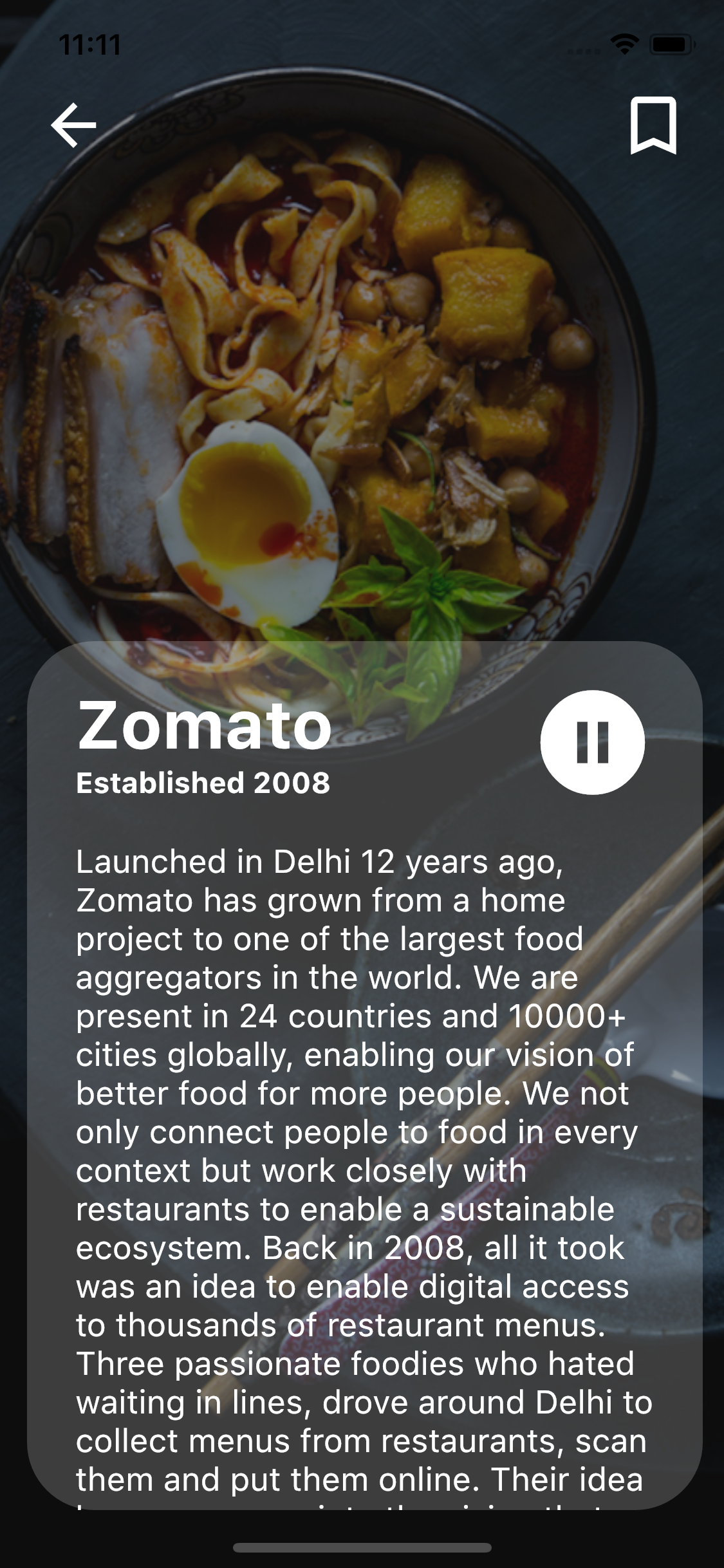 An application made using Flutter to display information about startups. Apart from reading about the startups, the user also has the option to listen to the information and bookmark his/her favourite startups.